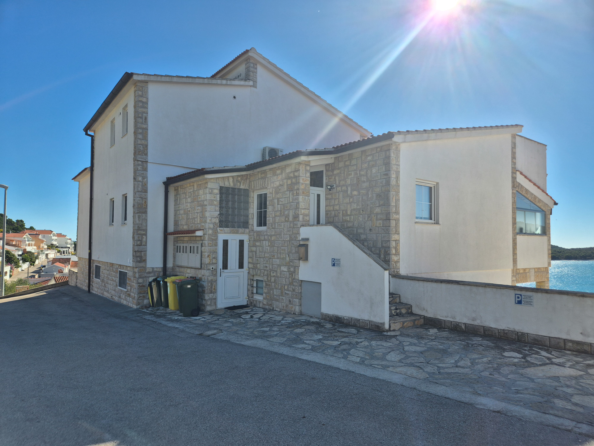 Öffentliche Parkplätze befinden sich direkt vor dem Gebäude. Entfernung zum Meer: 80 m