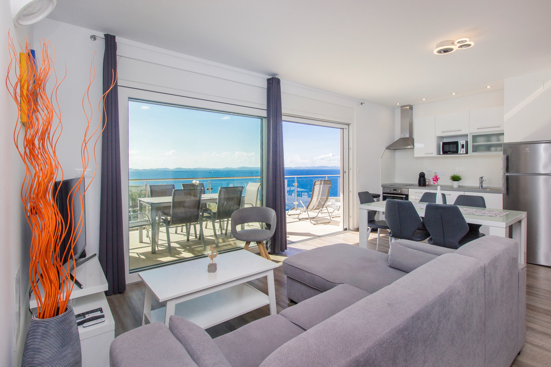 Die Villa besteht aus Erdgeschoss, erstem und zweitem Stock sowie einem Flachdach. Dank der einzigartigen Lage ist das Meer von fast allen Zimmern aus sichtbar. Der Hauptblick fällt auf die Kornaten, von einigen Zimmern aus kann man aber auch die Murter-Bucht und die umliegenden Hügel sehen. Die Villa bietet ein enormes Nutzungspotenzial. Der neue Eigentümer kann die Immobilie als eine Villa oder als zwei große Wohnungen im ersten und zweiten Stock mit Hauswirtschaftsräumen im Erdgeschoss nutzen oder als drei große Wohnungen oder sogar fünf separate Wohnungen zur Ferienvermietung.